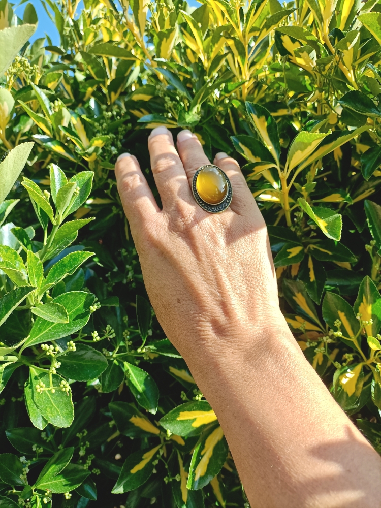 Bague alliage bronze et CALCEDOINE DE MANGUE AAA +