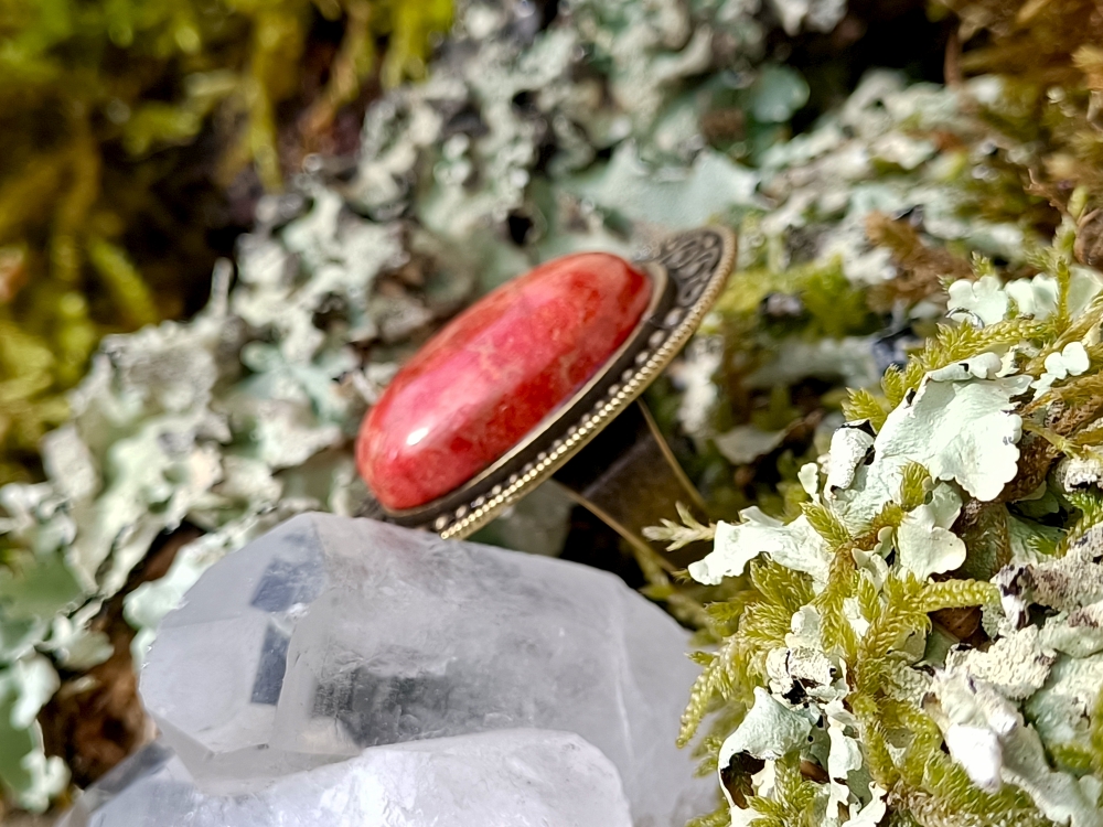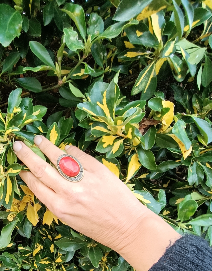 Bague alliage bronze et CORAIL EPONGE ROUGE DE QUALITE AAA +