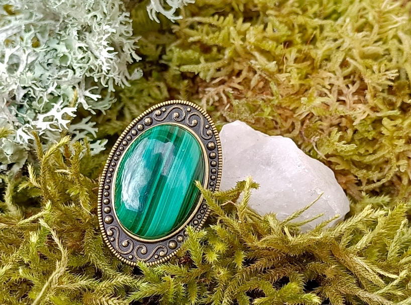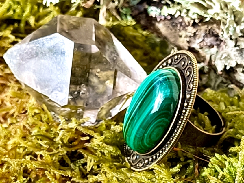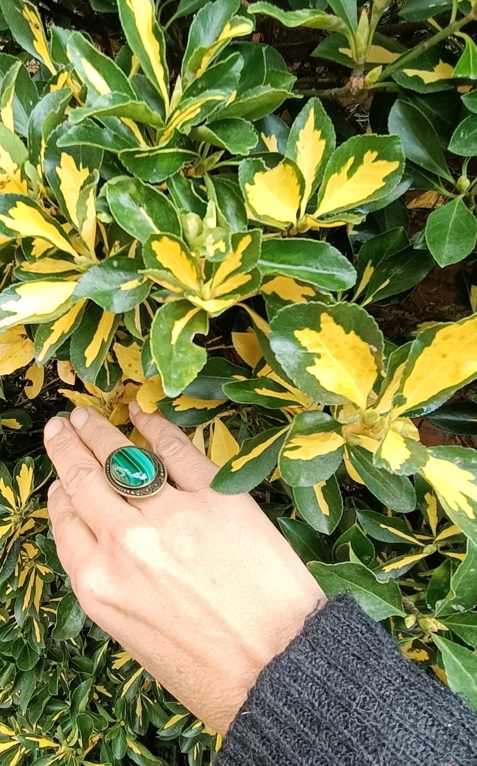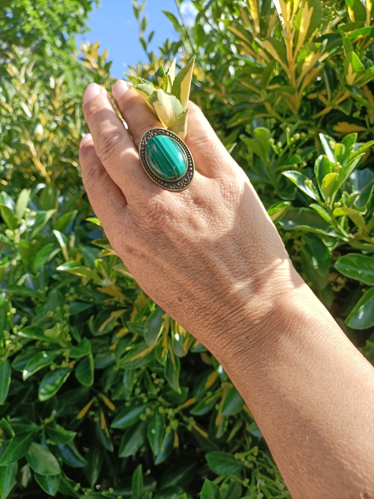 Bague alliage bronze et MALACHITE DE QUALITE AAA +