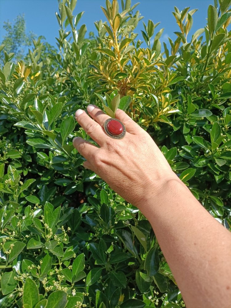 Bague réglable, alliage bronze, jaspe rouge AAA+