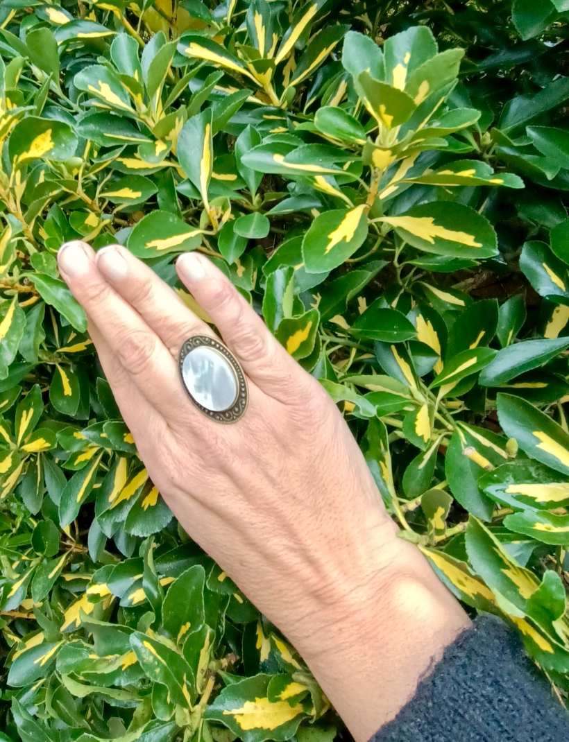 Bague alliage bronze et nacre DE QUALITE AAA +