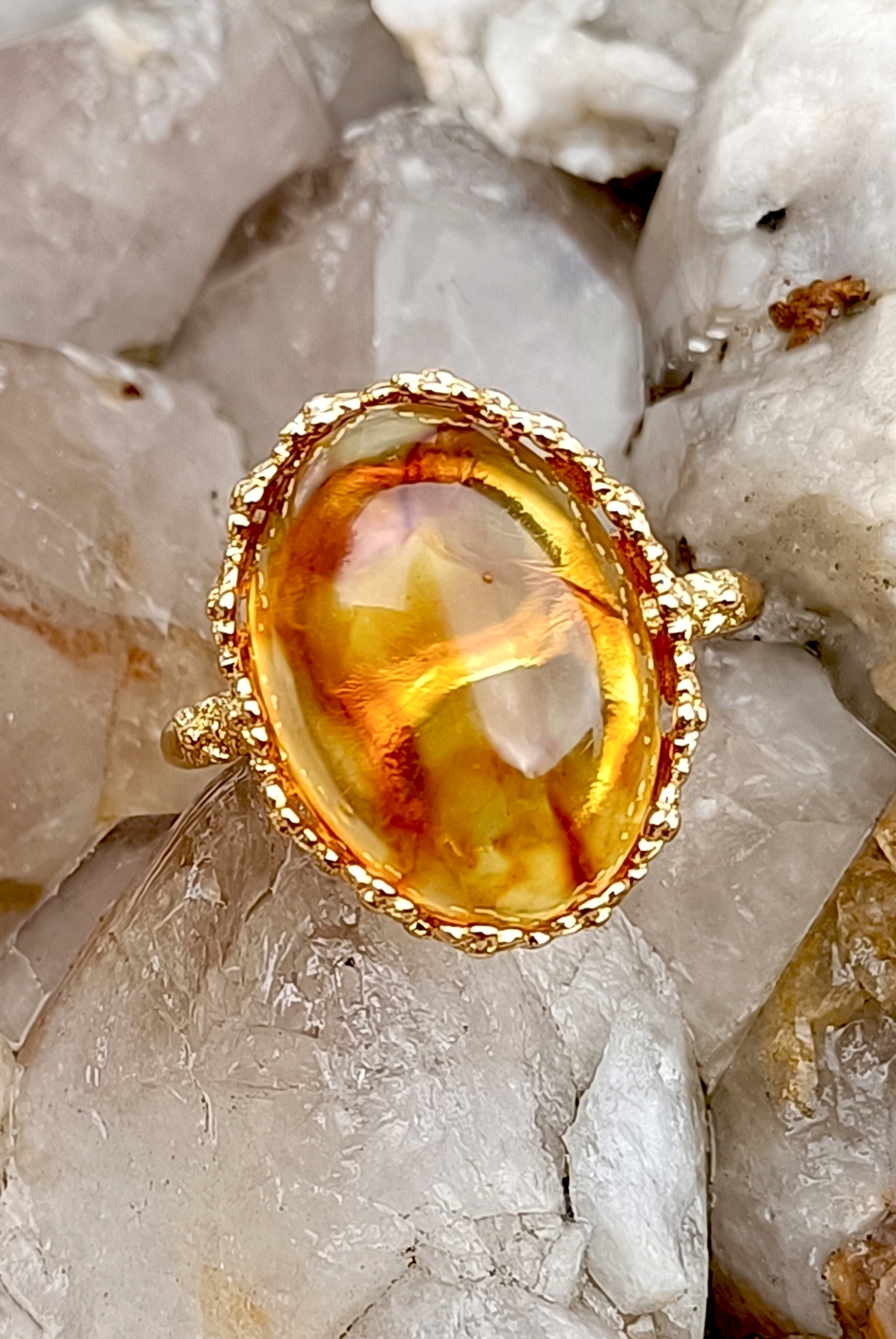 Soyez le premier à laisser votre avis sur “Bague réglable, cuivre plaqué or et ambre baltique”