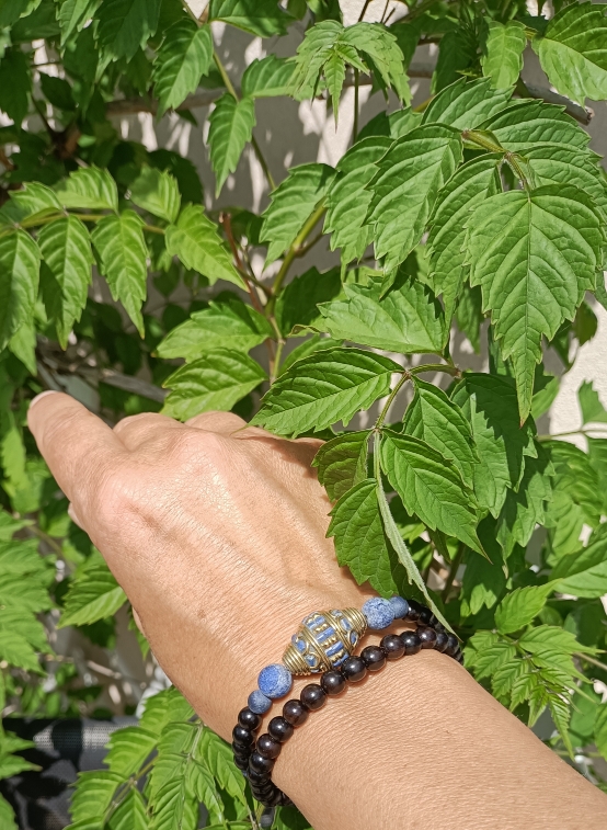 Bracelet double – perles d’ébène et lapis lazuli mat